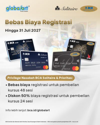 Dengan menggunakan kartu BCA Prioritas dan BCA Solitaire saat pendaftaran baru di Global Art, dapatkan: