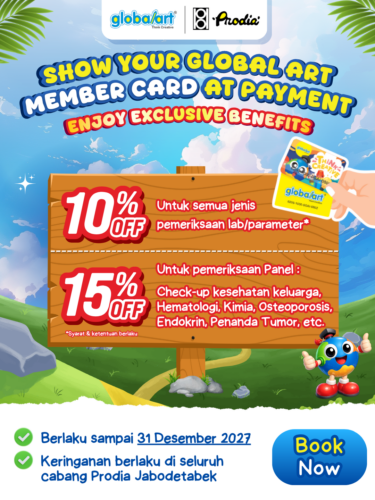 Tunjukkan kartu member Global Art saat pembayaran dan nikmati berbagai diskon layanan kesehatan di Prodia Jabodetabek 🎉