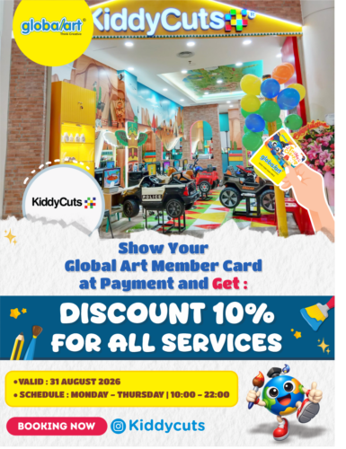 Dengan menunjukkan kartu member Global Art saat pembayaran, dapatkan diskon 10% untuk semua layanan di KiddyCuts.